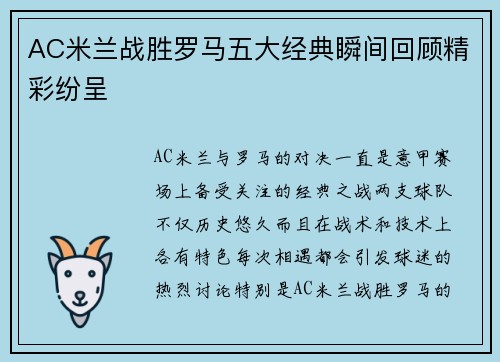 AC米兰战胜罗马五大经典瞬间回顾精彩纷呈